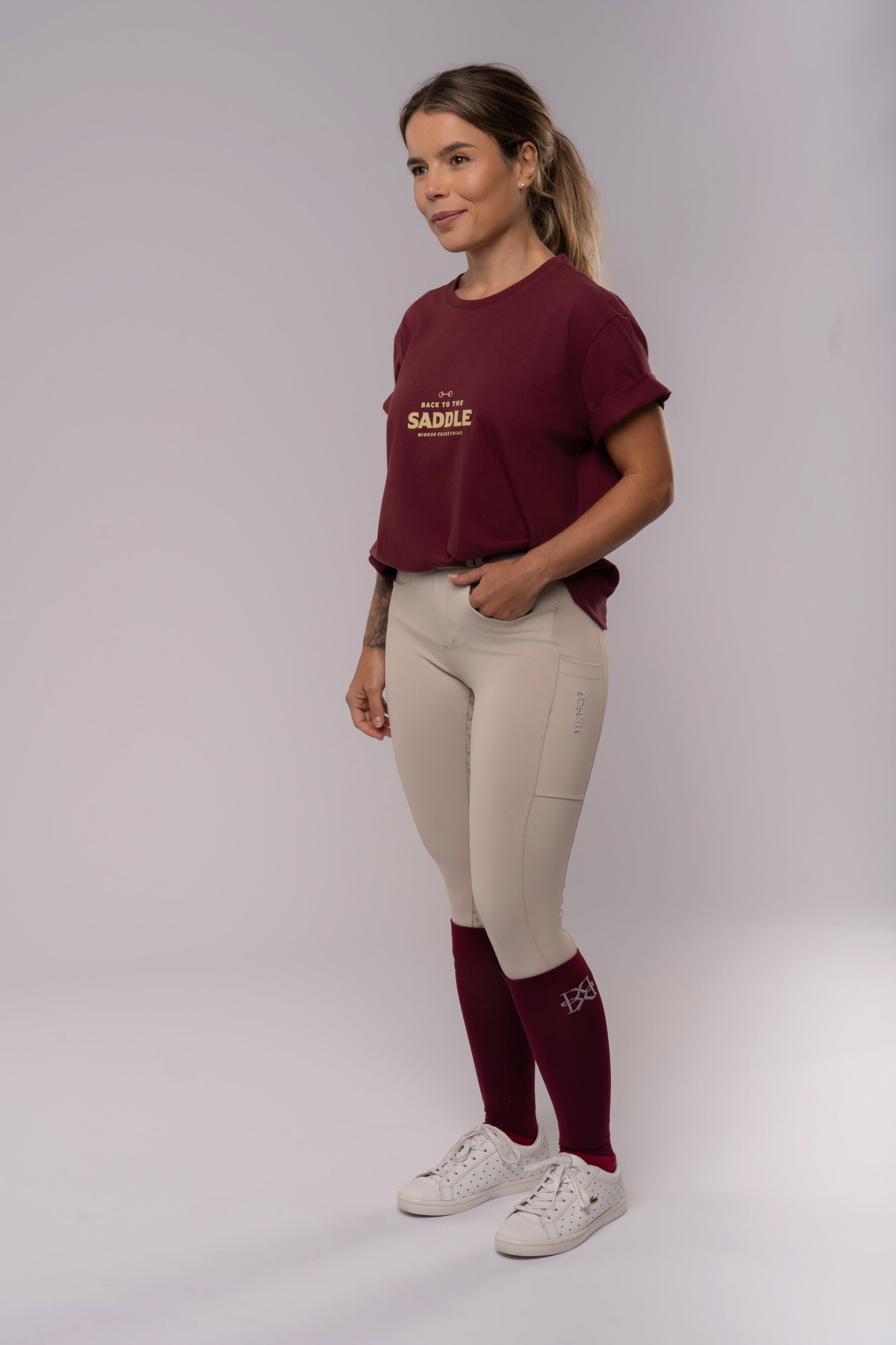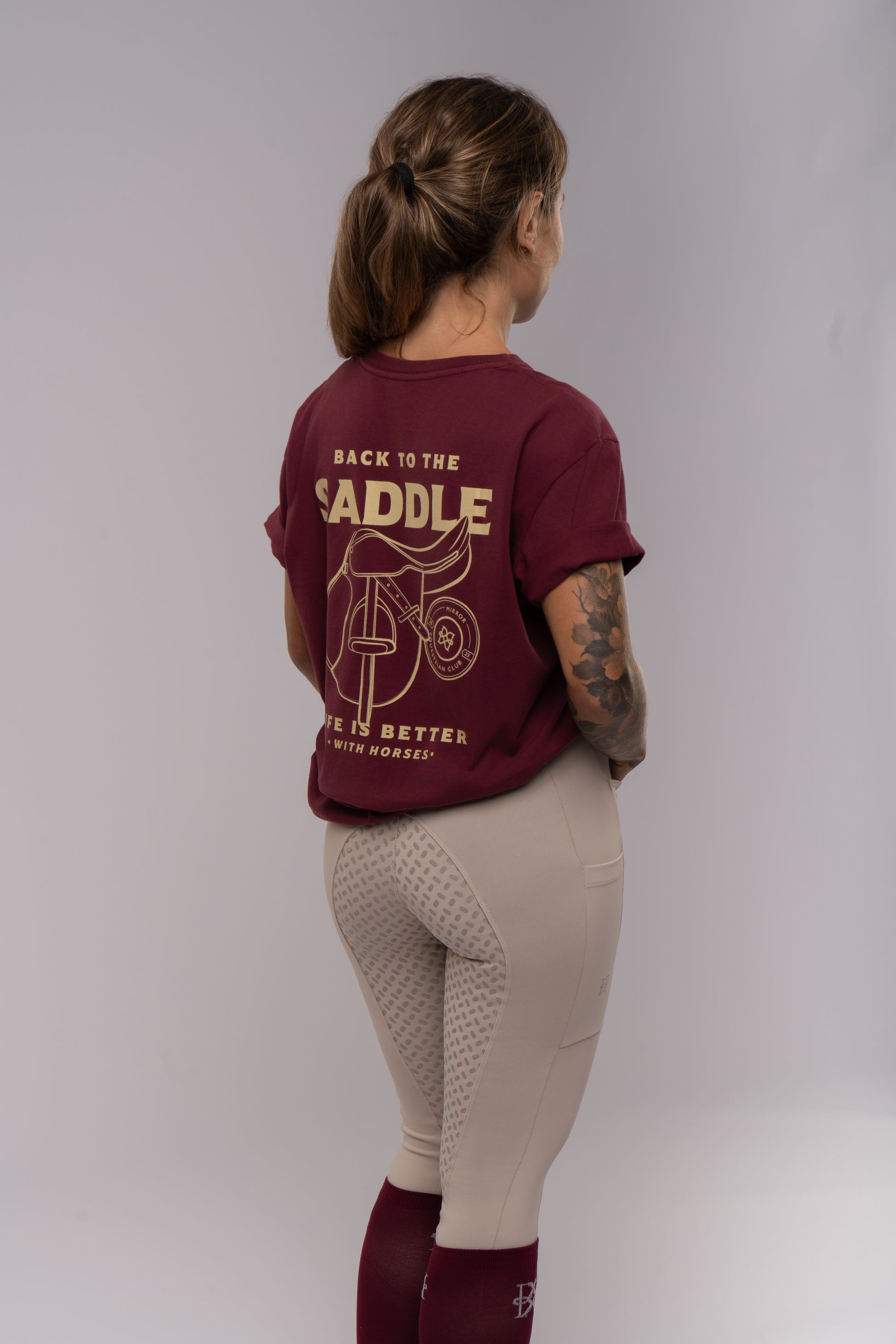 Inspirada na elegância do bordô com off white, traz uma estampa equestre única, sofisticada e nada óbvia.