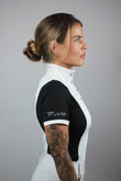 🌟 Detalhes em strass na gola, para dar um toque de brilho aos momentos inesquecíveis nas pistas.