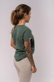 A combinação do verde esmeralda com a arte em off-white reforça a sofisticação da peça, entregando um look refinado com identidade marcante.