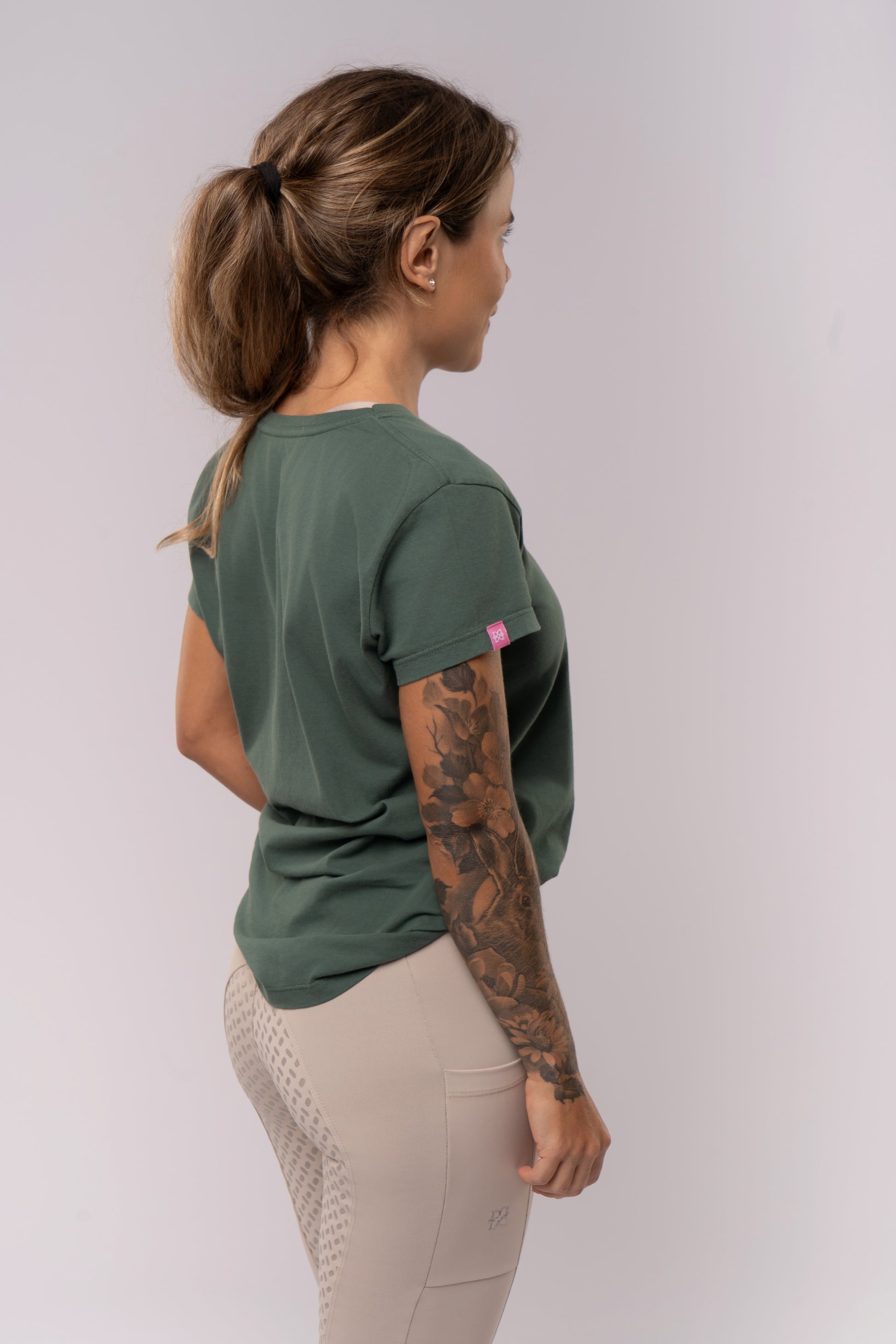 Para as Horse Girls conectadas com a moda, essa camiseta é a união perfeita entre o estilo clássico e o universo equestre. Inspirada na tendência Old Money, traz um visual atemporal, elegante e cheio de personalidade — sem cair no óbvio.