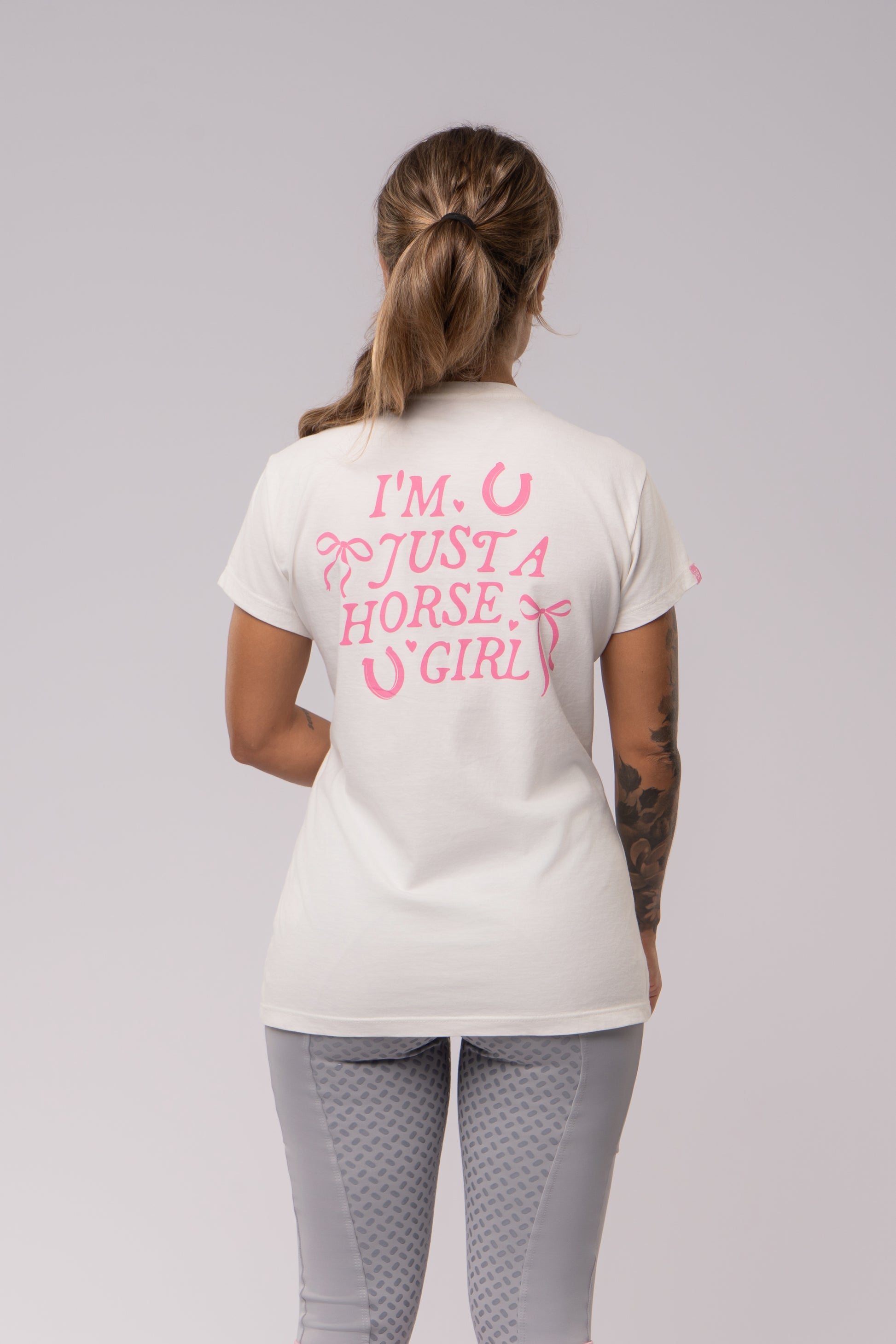 Perfeita para as Horse Girls românticas e estilosas, essa camiseta é inspirada na tendência “I’m just a Girl”, agora reinterpretada no universo equestre.